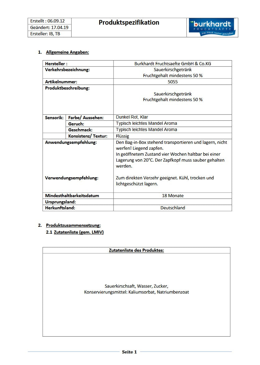Sauerkirschsaft, Wasser, Zucker,