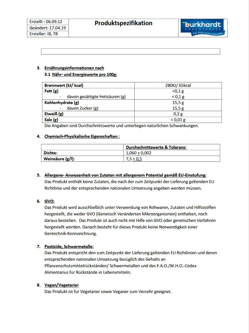 Fruchtgehalt mindestens 50 %