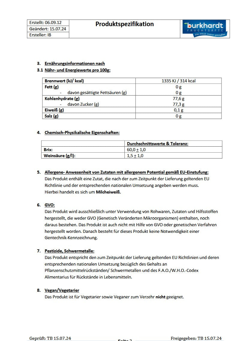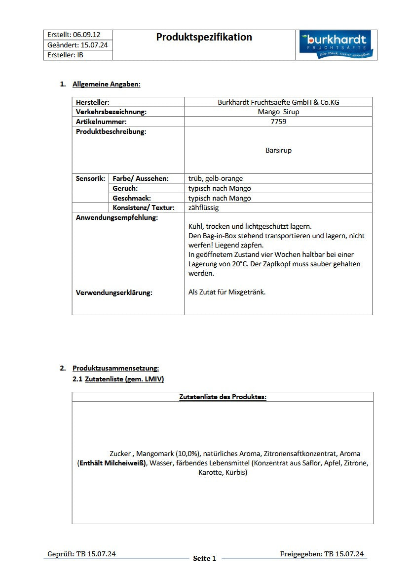 Zucker , Mangomark (10,0%), natürliches Aroma, Zitronensaftkonzentrat, Aroma