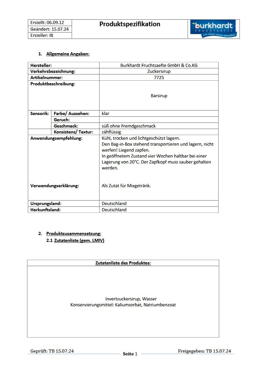 4* Sirup Zucker 5L BiB